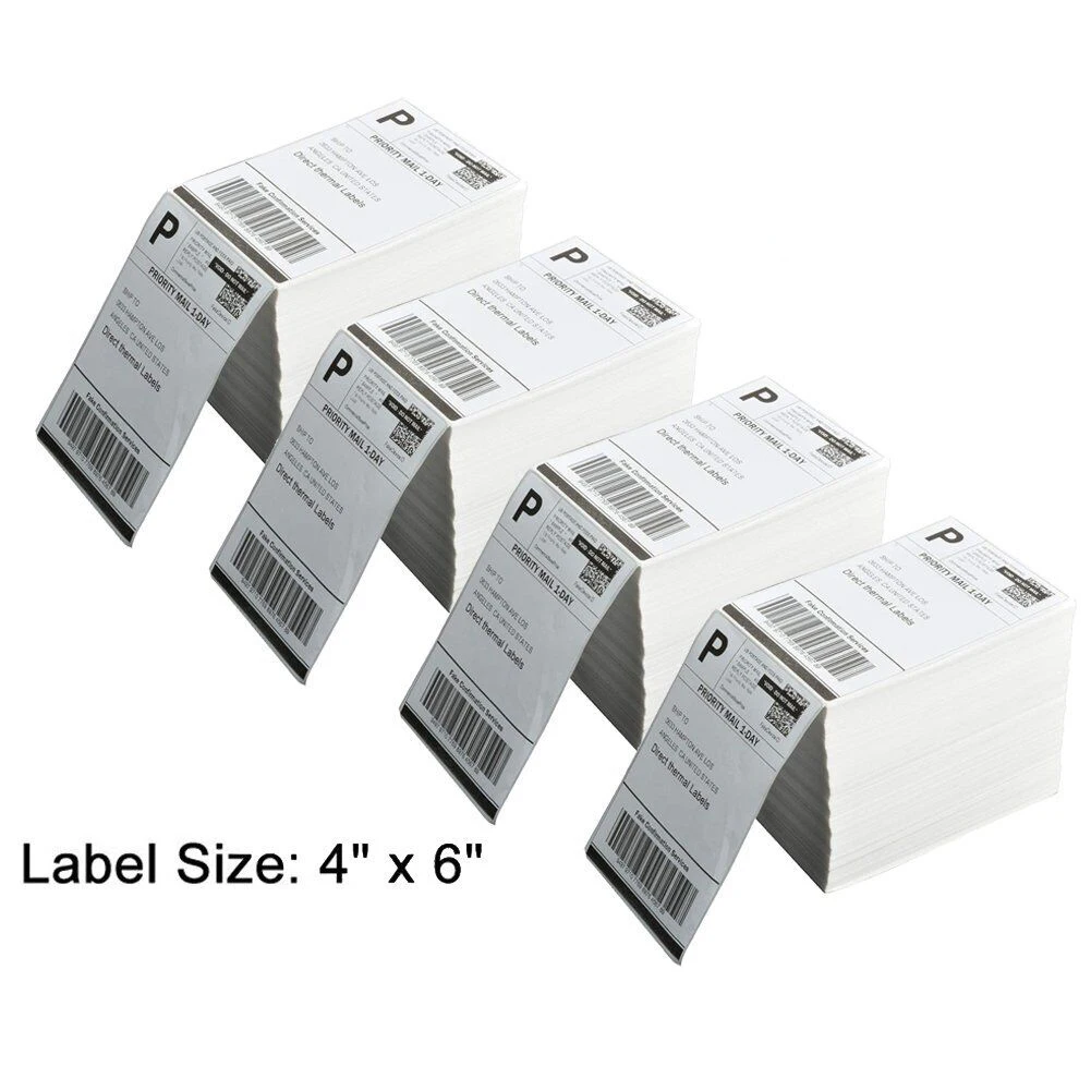 Low MOQ 4x6 Direct Thermal Label Waterproof White Blank 100x150 Size Adhesive Shipping Sticker for Exhibition Use details
